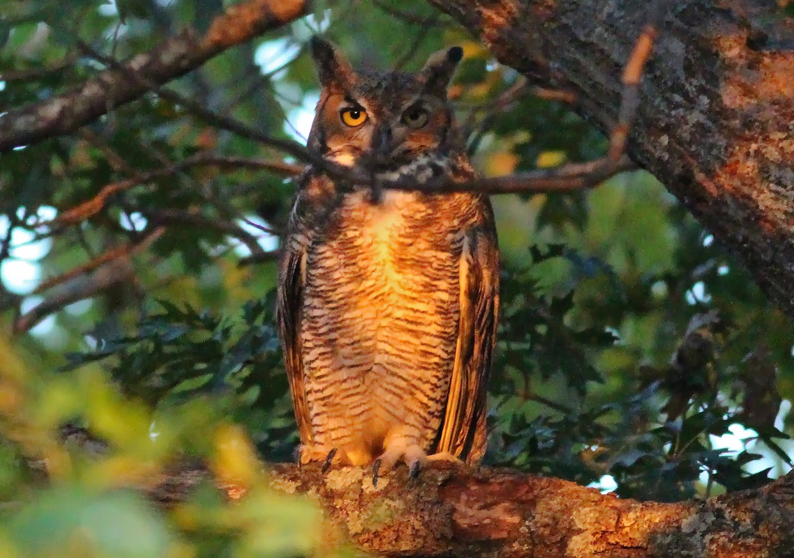 | Male Great Horned Owl in a Texas Red Oak, Dallas, Texas, October 2013 |