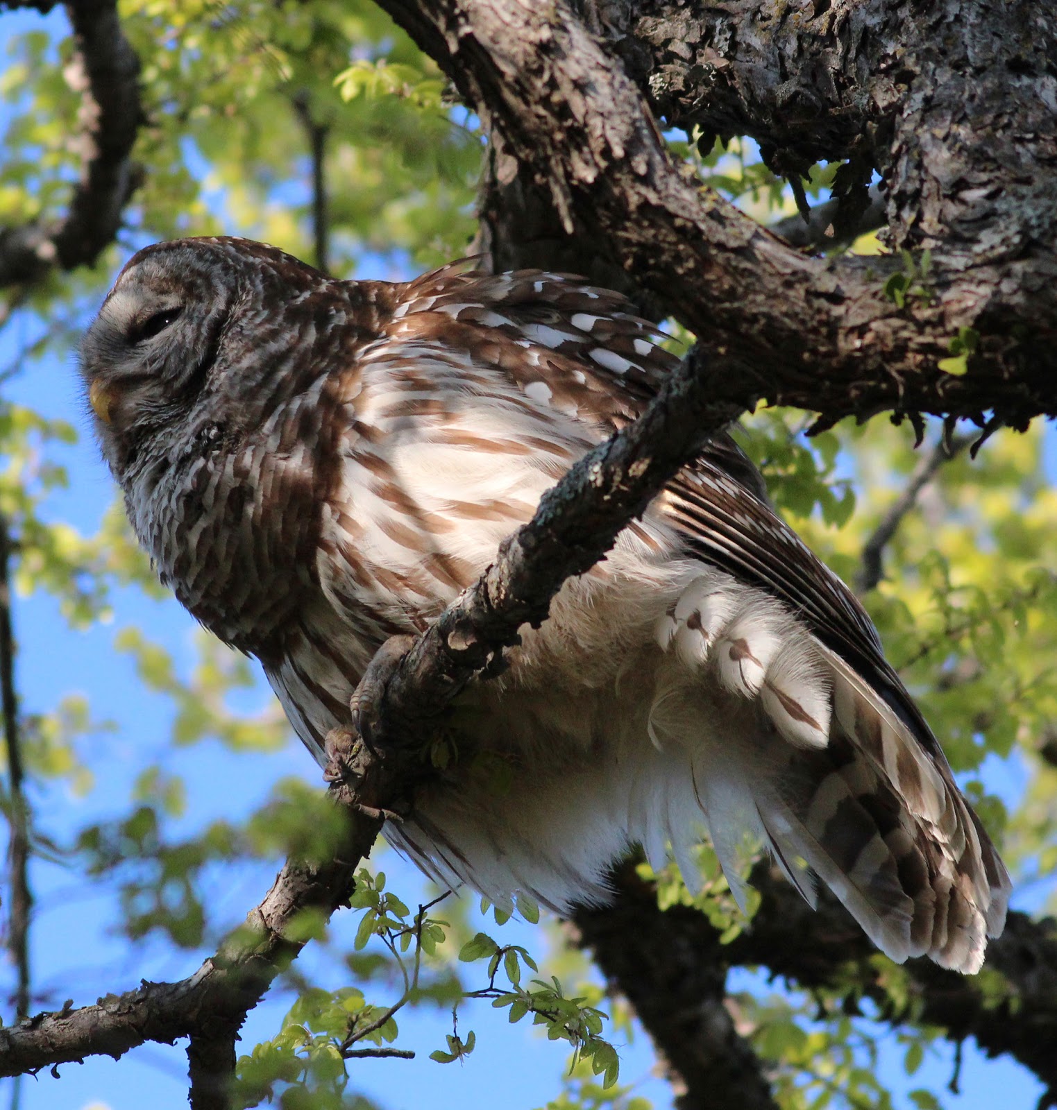 The haunting rhythmic monkey like cries of the woods announce one thing, you are in Barred Owl country. The cool evening air of the Texas spring woods is often punctuated with these haunting hoots one of the most vocal of all native birds in the State of Texas. Heard at a distance but rarely seen the Barred Owls of the lower White Rock Creek drainage give an interesting look into a world that few see.