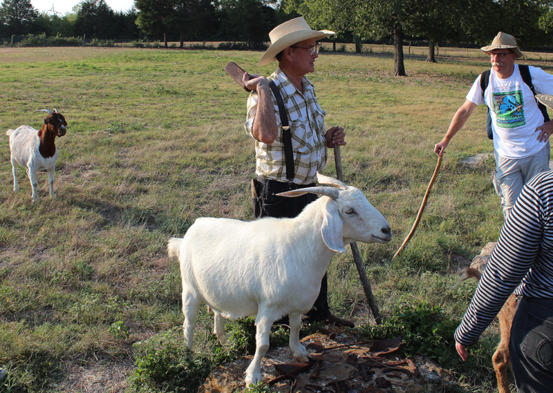 | Bill with his goat Olympia standing at his grandpa’s home site |