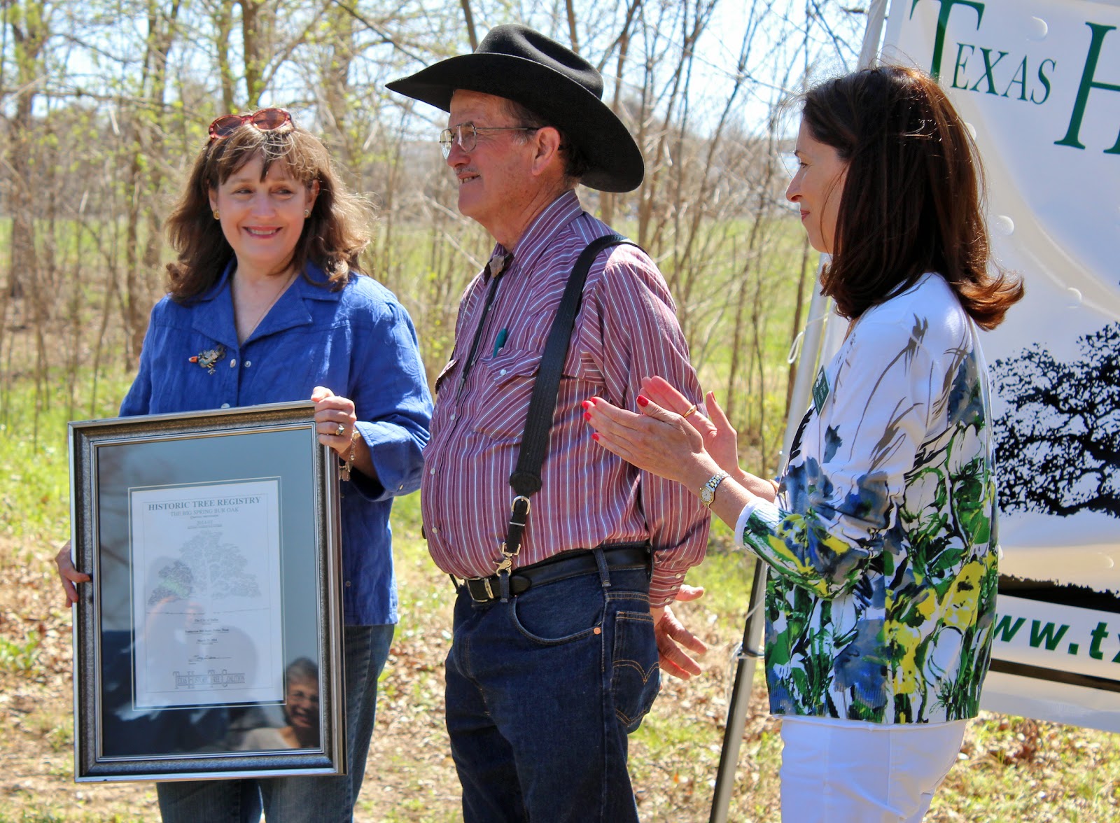 The first honor to be bestowed at Big Spring is the historical tree dedication by the Texas Historic Tree Coalition.