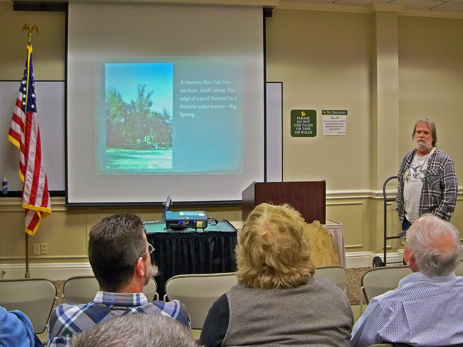 | Tim Dalbey giving a talk at a November 2013 Texas Historic Tree Coalition meeting about the tree rings of the Post Oak and the relation to the Bur Oak at Big Spring |