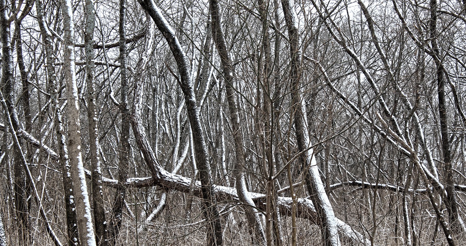 | The woods beyond, in Bryan’s Slough, under a blanket of snow |