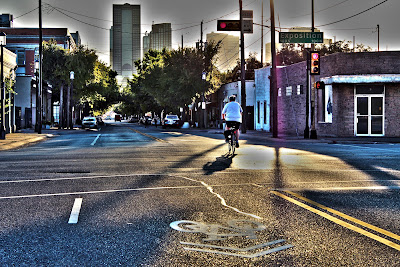 | Cyclists on Main at Pearl, Downtown Dallas |