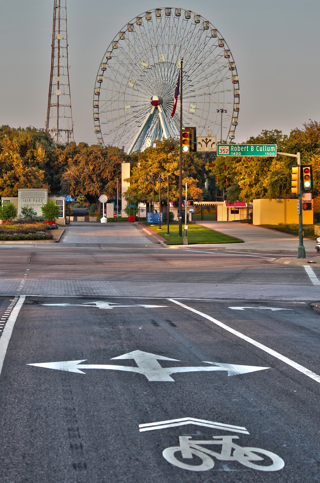 –Main Street from Lamar all the way through Deep Ellum to the southern terminus of the Santa Fe Trail at Hill Avenue. Getting to the Fairgrounds this way is still somewhat of a jump requiring a ride down Haskell, which is one way. A better route is to ride down to Exposition and Main, ride Exposition to Fair Park.