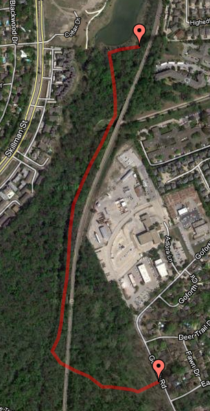 Moving on….knowing the area well, I headed for the intersection of Goforth and Eagle Trail. I knew the concrete trail and the fishing trails off of it would not have any pigs but a slack water area known as Ferris Branch towards Lake Highlands High School would. When DART built the Blue Line about 10 years ago they constructed an access road here for heavy equipment. The woods and flooding have slowly covered the old gravel road here. It’s still easy to follow for the most part just look for a piece of chain across the wooden bollards near the Goforth/Eagle Tr intersection. Head directly for the treeline. Plenty of places to cross this small tributary if you feel like it. The trail(s) become somewhat faint as they approach the Lake Highlands Town Center. Great place to walk a dog or ride a horse. Great area to explore if you need something new but want to stay close to White Rock Lake. Plus you might see a pig!