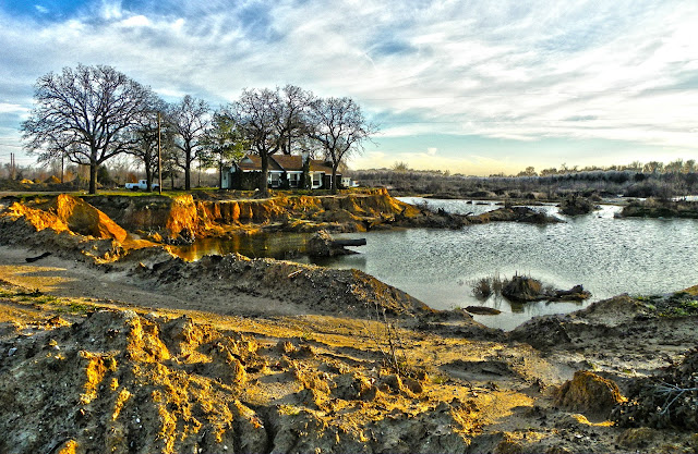 The house sits directly across the street from the Goat Island Preserve. Surrounded on three sides by heavy gravel pit excavation, it now sits on a postage stamp spit of land not much larger than the footprint of the home itself. It makes you scratch your head in amazement. A Sheriff’s Deputy I met down there as I was taking this photo said it was not surrounded on three sides, it was surrounded on all six sides. If there was such a thing. I wonder if the sands and gravels under the land there are really worth enough to allow something like this to happen.