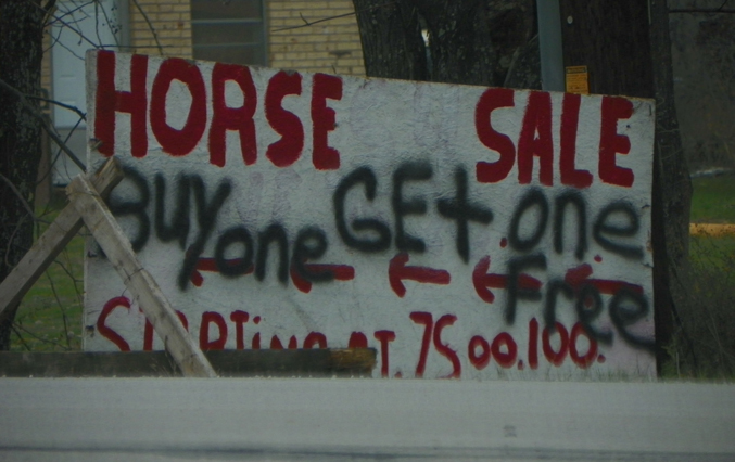 | Horse sale sign, Beltline Road, Sand Branch, TX |