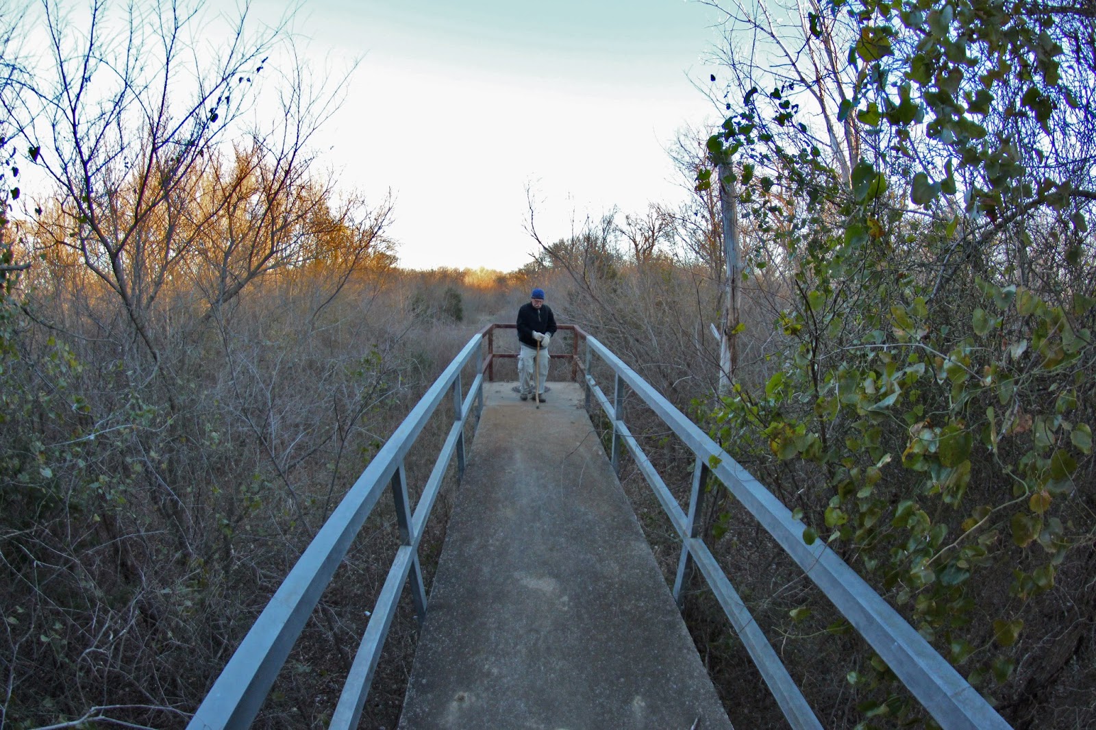 One of the only manmade features of metal and concrete visible inside the preserve is a lifting station constructed on the levee for a sanitary sewer line. It stands like a pier, jutting out to the east of the levee and is roughly two stories high at the easternmost end. A great vantage point and also serves as a landmark. From here, looking east, one can see the route needed to access the islands and meander crossings to the east.