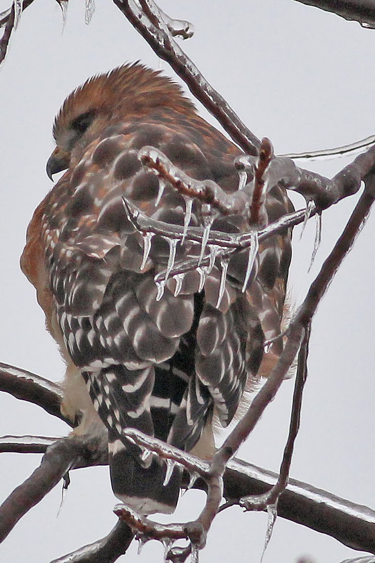 | Red Shouldered Hawk in a frozen Cottonwood tree |