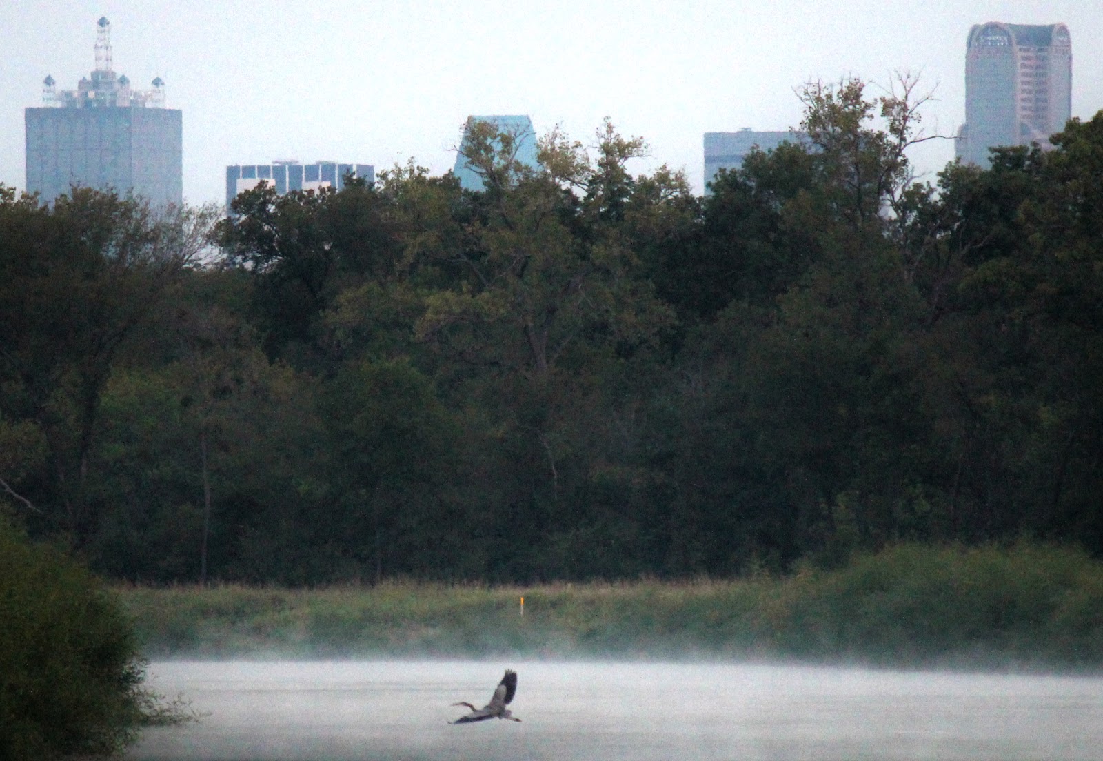 The water used in the wetland cell project comes mostly from the wastewater treatment plant upstream. It has no smell and I have been told that this water is actually cleaner than the Trinity River itself. Sitting above the Trinity River some 25 feet during normal river flow it only floods when the river experiences prolonged rain events. One interesting note about this place is the fog that seems to develop along the wetland cells even on warmer mornings.