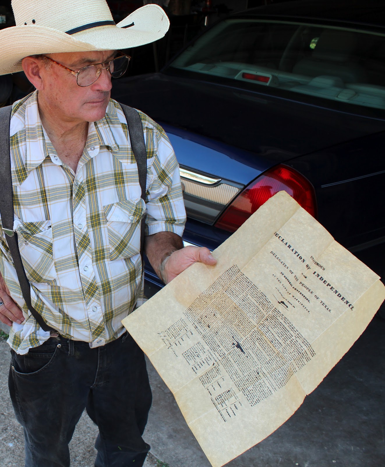| Billy Ray with a copy of the Texas Declaration of Independence brought by Mr Gibson |