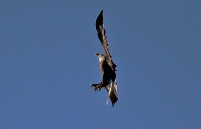 The abundance of other raptors in the area can make it hard at first glance to sort out which large bird is the Bald Eagle. The bird at right, a Crested Caracara was seen not 50 yards from the Bald Eagle nest site flying around. Known as the Mexican Eagle and featured on the flag of Mexico at a distance bears a striking resemblance to that of the Bald Eagle.