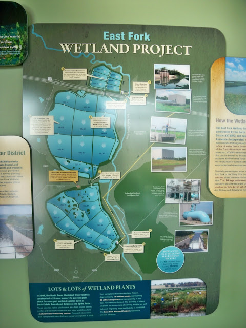 The wetland processes 40-90 million gallons of water per day. The water is a mix of treated wastewater and water from the Trinity River discharged below Lake Ray Hubbard. Pumped in by a trio of 300 horsepower pumps from the river to the head of the wetlands. From there it’s all nature and gravity at work inside the wetlands.