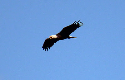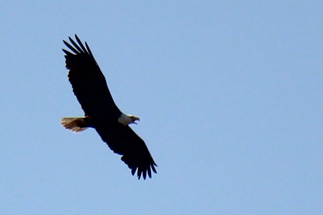 It was a rare treat to watch the male Bald Eagle begin a series of high arching dives and wheeling turns directly overhead. Rare is a day when I gasp in awe at a bird doing something. Rarer still when a group of what I would consider seasoned outdoorsmen all gasp in collective agreement. That happened.