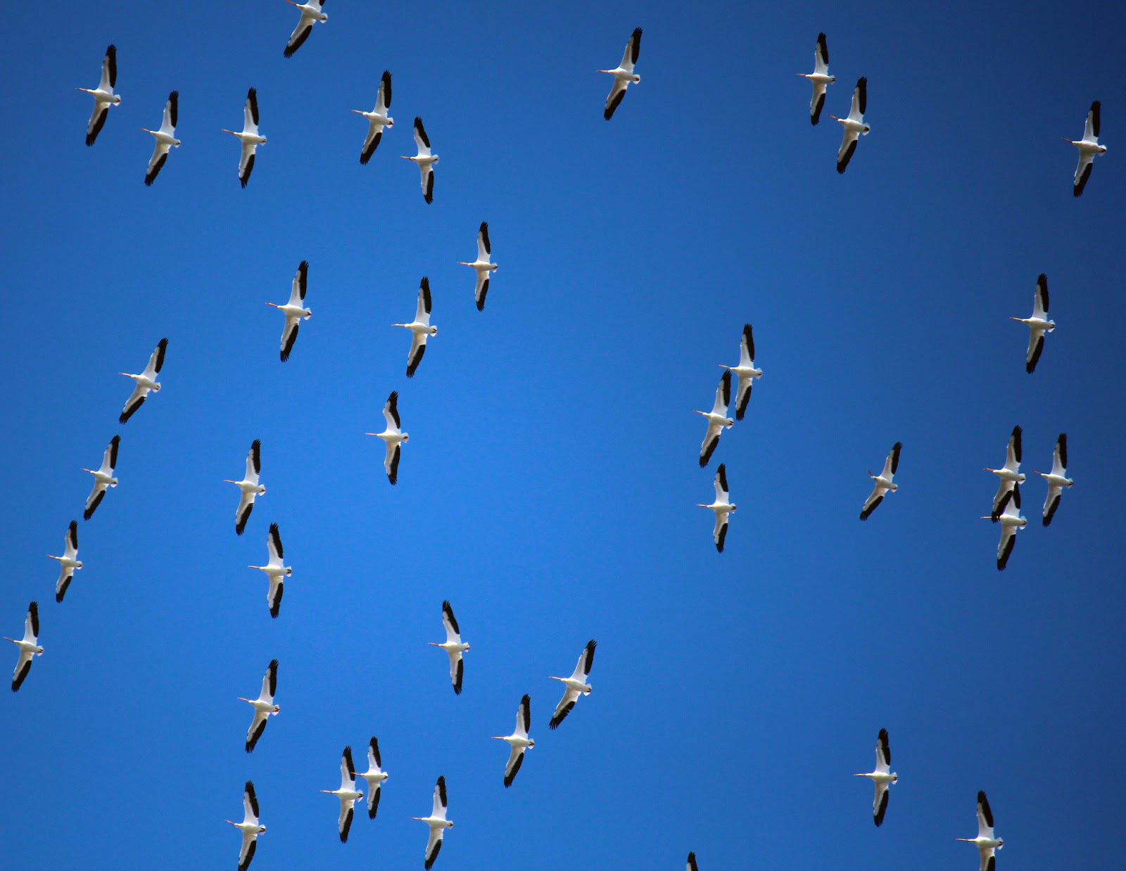 The pelicans here make regular commutes between John Bunker Sands, the McCommas Bluff Swale Lake Ray Hubbard and White Rock Lake. Able to glide vast distances using thermals and wind the near effortless rise of a flock spiraling upward is a sight to see.