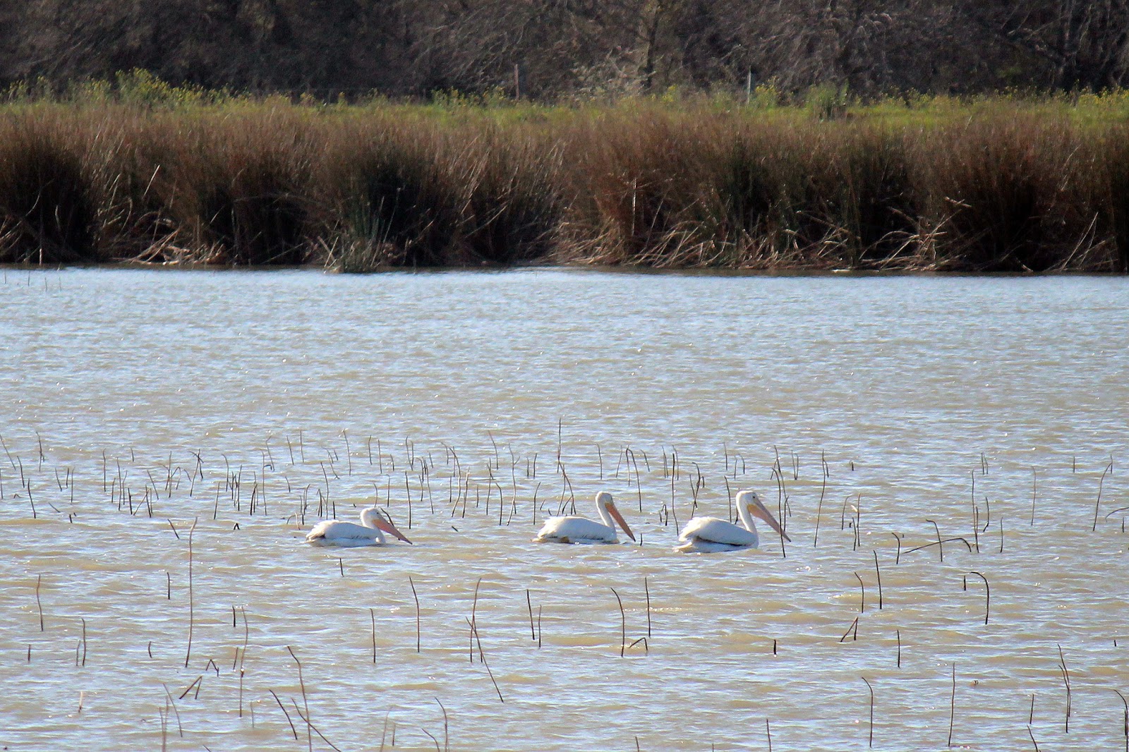 It would be interesting enough to see the water filtration process in action. There is much more. Interesting birds by the thousands call this place home. Most are of a migratory persuasion and spend a day or a week here before heading yonder to points unknown. Canada in the spring. Mexico in the fall. During the summers birds of the southern hemisphere come here during their winter. On the edge of the Flyway, the wetlands attract the occasional flock of geese not seen further west.