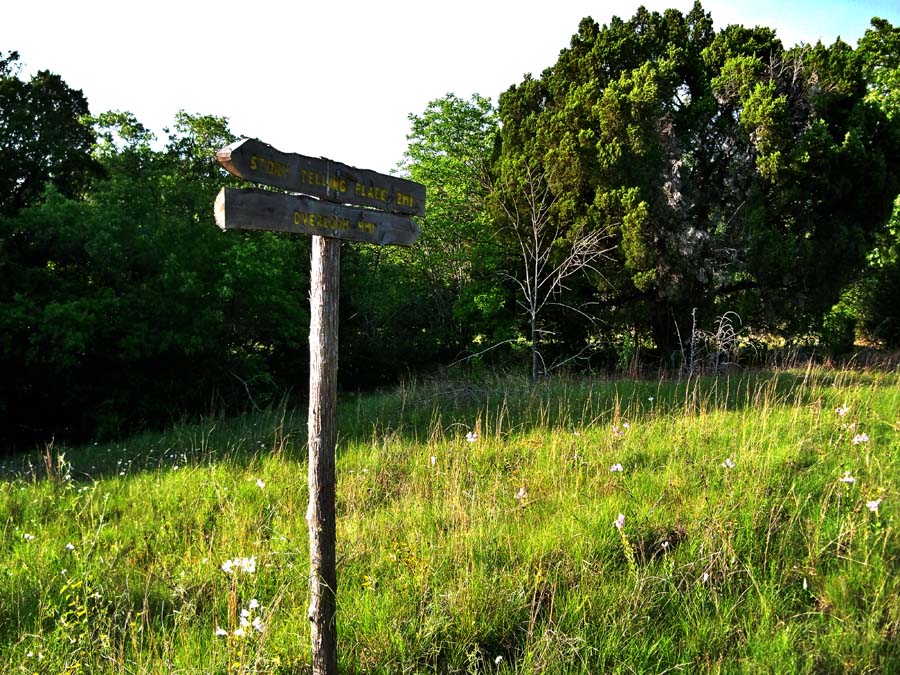 | Devon Anderson Park sign noting distances to Comanche Storytelling Place .2 mile and one of the overlooks .4 mile. |