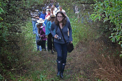 | Laray Polk crossing Bryan’s Slough at Big Spring hike with city officials |