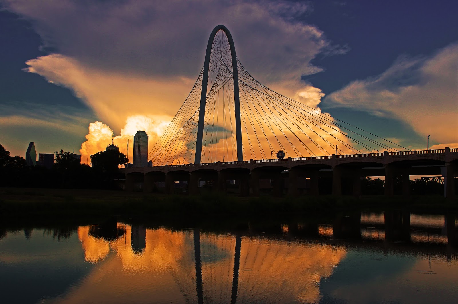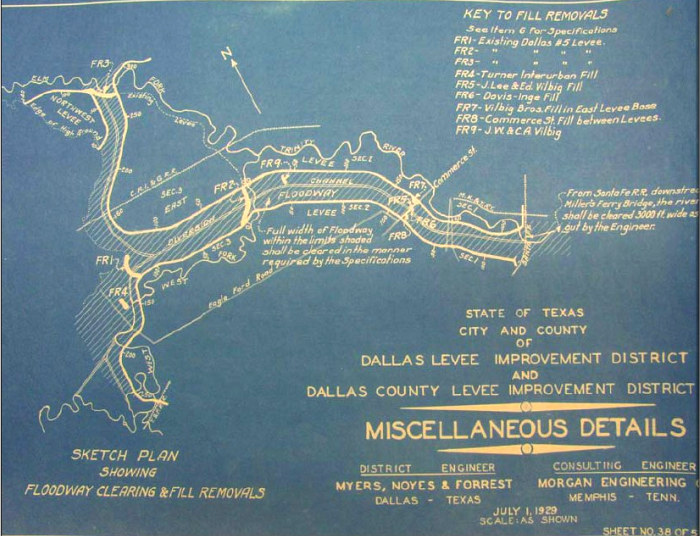 The water feature here so often photographed as a backdrop reflection to the Margaret Hunt Hill Bridge is a set of shallow depressions from long ago borrow pits used to build the levees. Old maps and aerial photos dating from the 1920s and 1930s show a small creek or water feature running through this area that might have existed prior to the levees being constructed. During levee construction, this area was excavated and the dirt used in the levees.