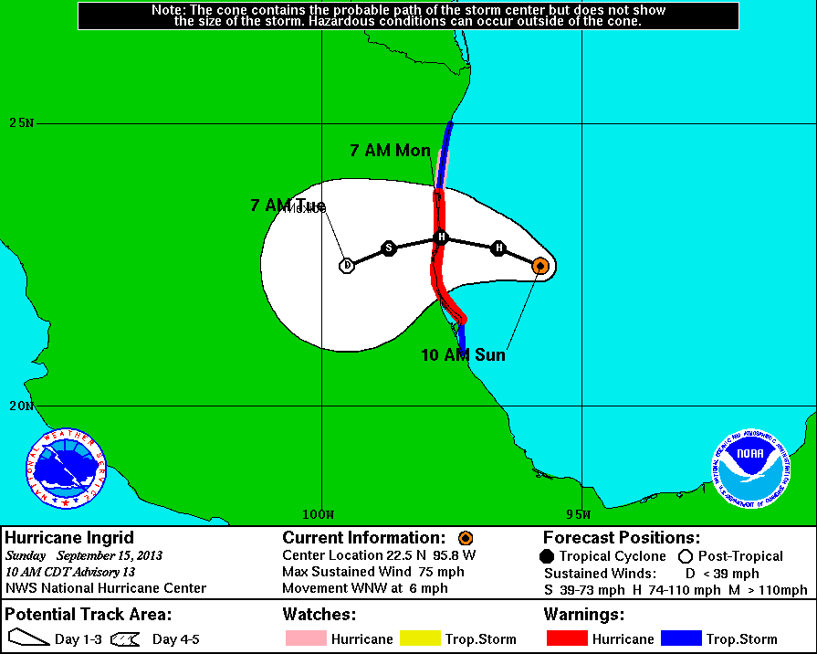 Earlier in the week and some thousand miles to the south, Hurricanes Ingrid and Manuel slammed the Central Mexican coasts along both the Gulf of Mexico and Pacific. As the storms moved into the interior that tropical moisture funneled north via the annual monsoonal flow across the Southwestern United States and Texas.