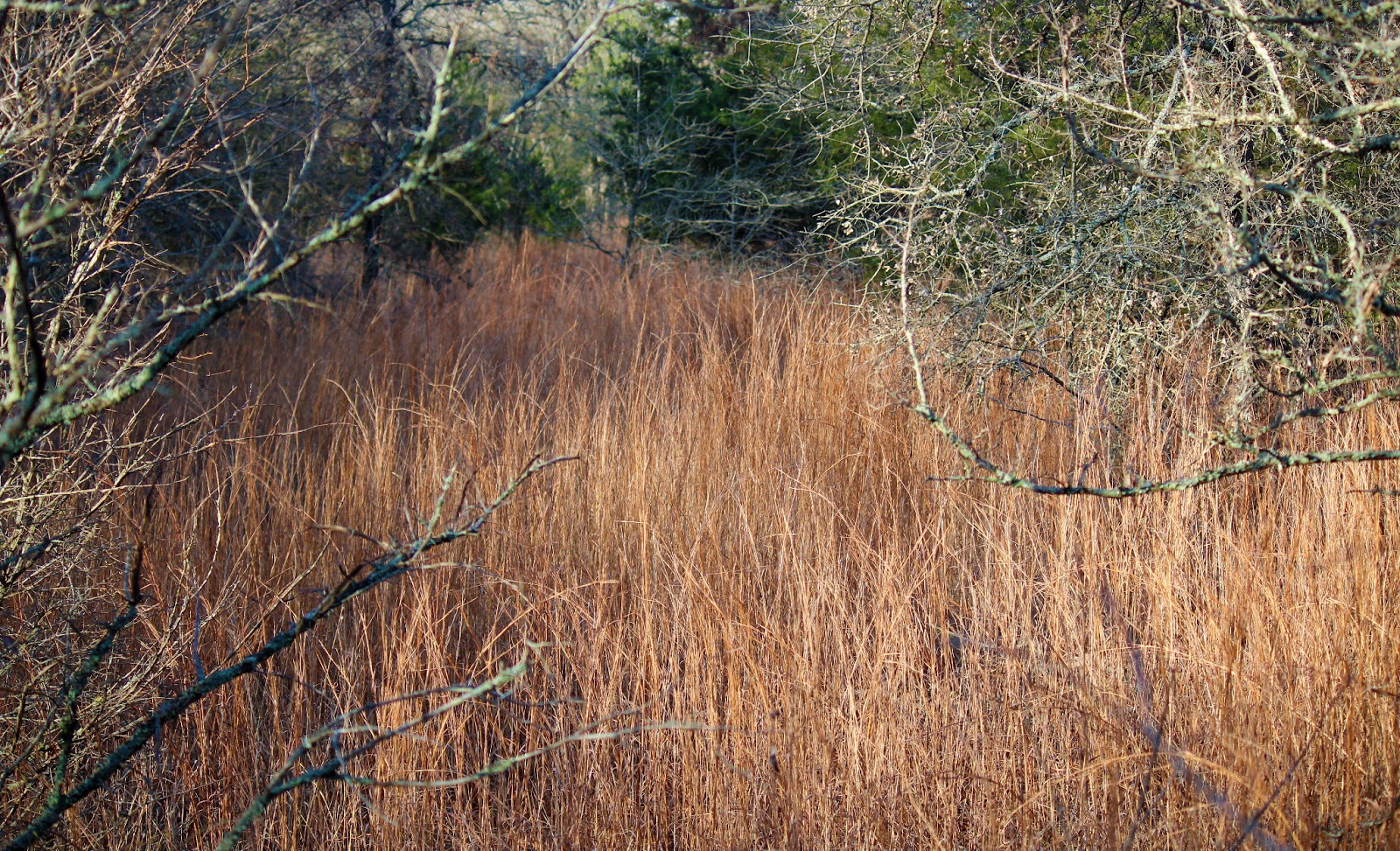 Moving east of the lake the formalized trails are non-existent and the preserve opens up into an open prairie environment dominated by stands of native prairie, cedar and cactus. Only the first hundred yards from the lake or the trout lily area are dominated by greenbriar(thorn thickets) before opening into more open ground.