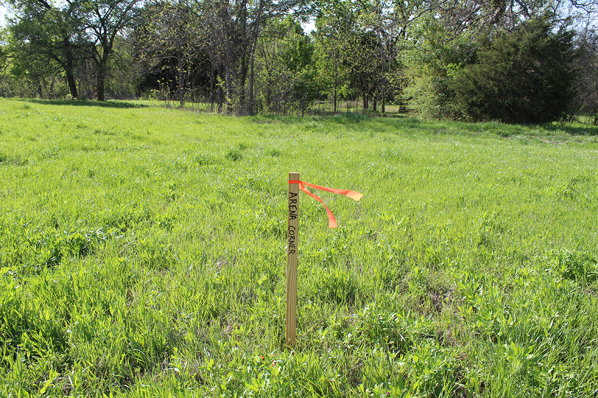 The staking by the city happened just a couple days before a pre-bidding “walkaround” by interested construction contractors looking to bid on the Texas Horse Park. I obtained the Meeting Minutes from that meeting and half guessed the staking had something to do with the show-and-tell. After looking through some of the older plans for the Horse Park online, the only alignment I can find that has a similar footprint would be that of a “collegiate equestrian facility”. See attached. Looking at the lay of the land there, the amount of dirt needed to level that into a flat space would be enormous, many hundreds of truckloads of soil.
