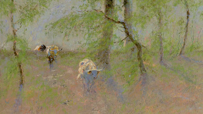 I can’t help but think of how much intestinal fortitude it must have taken for Reaugh to sit painting among a half wild herd of these large animals. Reaugh wrote that he was still enough, for long enough that a inquisitive longhorn would often openly challenge him in a field, thinking he was not human.