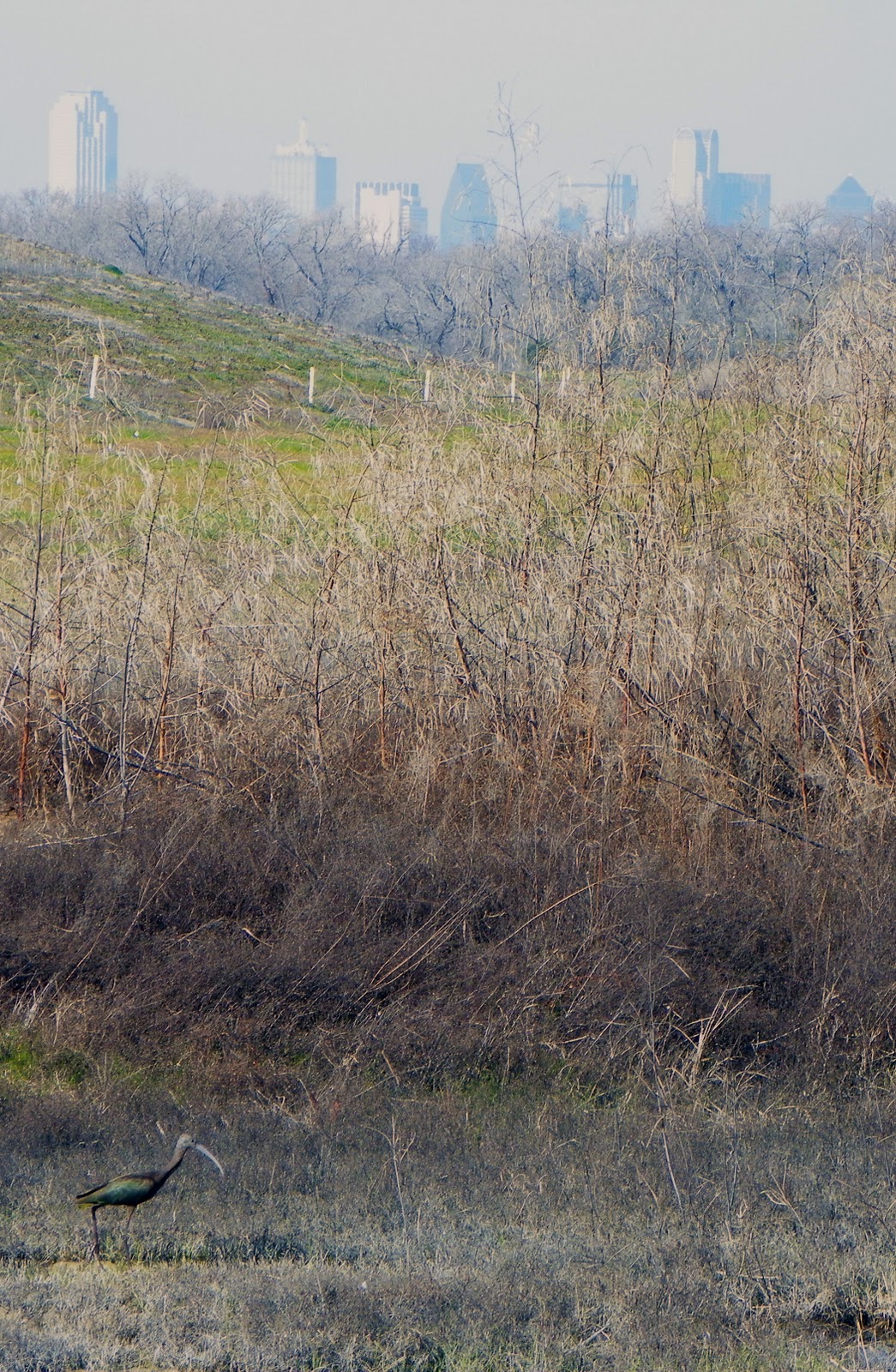 I have often thought that one of the exciting draws to the Trinity River is that the environment there is tougher and harder than you are. It can take a monumental beating and bounce right back. Take for instance the bird in photos to the left and below. That is a White Faced Ibis (Plegadis chihi) at the Wetland Cells near Joppa. Rare to see an Ibis in January, in the dead of winter. The bird itself is a Threatened Species here in Texas, making it a rare sight any time of year. Seeing things like this makes you realize maybe the Trinity is not as ruined as one imagines.