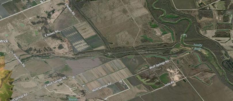 The current mouth of Ten Mile Creek is an artificially constructed sluice of sorts that features a re-routed section of Ten Mile from the town of Ferris at I-45 to the Trinity. Known as South Creek, it runs through one of the finest cattle ranches in Texas, known as the South Creek Ranch. Famed for their easy to spot longhorn orange buildings and fenceposts, the acreage of the ranch commands some 6,000+ acres in Dallas County.