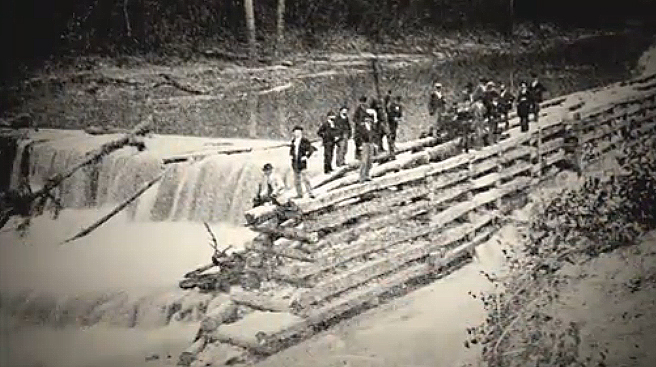 | First lock and dam at McCommas Bluff circa 1893 |
