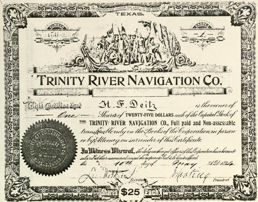 | Stock Certificate for Trinity River Navigation Company |