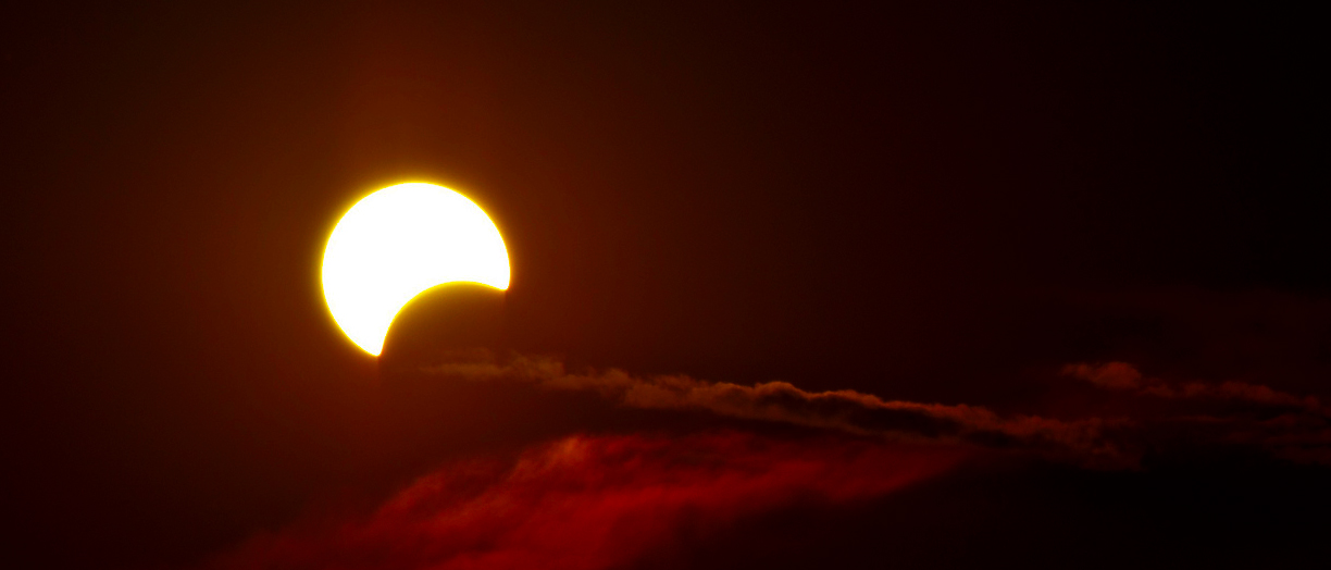 This was the May 20, 2012 eclipse visible across much of the Western United States and Pacific Rim. In Dallas, seeing the eclipse became an issue when a severe thunderstorm formed over Jack County to the west. The top of the storm blew high level clouds eastwards obscuring the eclipse through much of its duration. It was not until a few minutes before sunset that the eclipse poked out from the low horizon allowing for a really spectacular sunset.