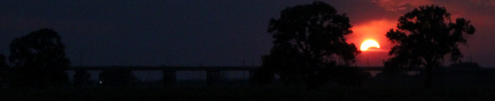 | Solar eclipse May 20, 2012 over the Trinity River in Dallas Texas Inwood-Hampton Road Bridge |