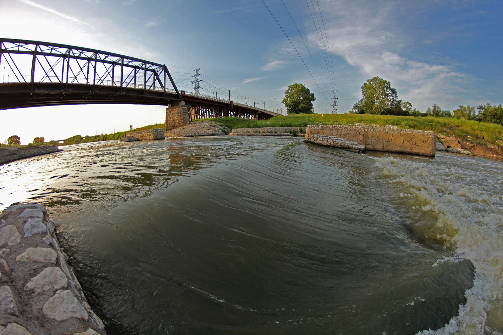 At the far end of the levees stands the Santa Fe Trestle Trail and the Trinity River Whitewater Park. The century old Santa Fe Trestle has been converted into a pedestrian/bike bridge that spans the Trinity right at the very end of the southernmost portion of the levees. Just upstream a mere 50 feet or so sits a purpose built DART Light Rail bridge that services the Red and Blue lines to the Corinth Station from Downtown.