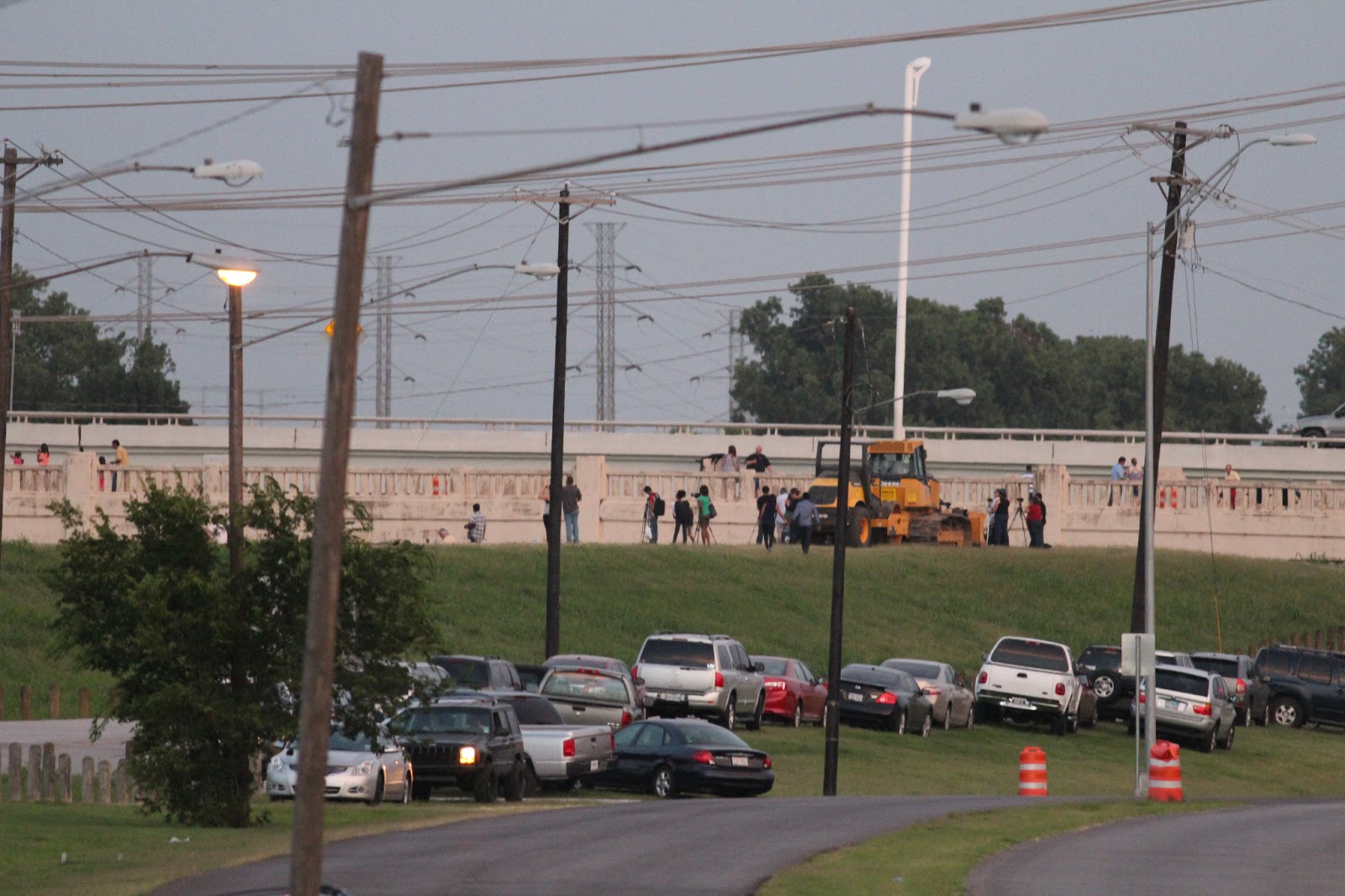 The light bouncing off the Moon through all that thick East Texas humidity creates an orange glow at first then into a mustard yellow as it passes by Reunion Tower. It’s usually around this time that many people photographing the Moon will migrate towards a better spot for their liking. The Moon moves at a fast pace diagonally from lower left to upper right. The pace of which allows for a shot or two at most before requiring a move of a few steps if one wishes to re-rack the same shot. Below is a real time clip taken in June 2013 of the Moon as it travels from left to right across the night sky moving directly behind the Margaret Hunt Hill Bridge