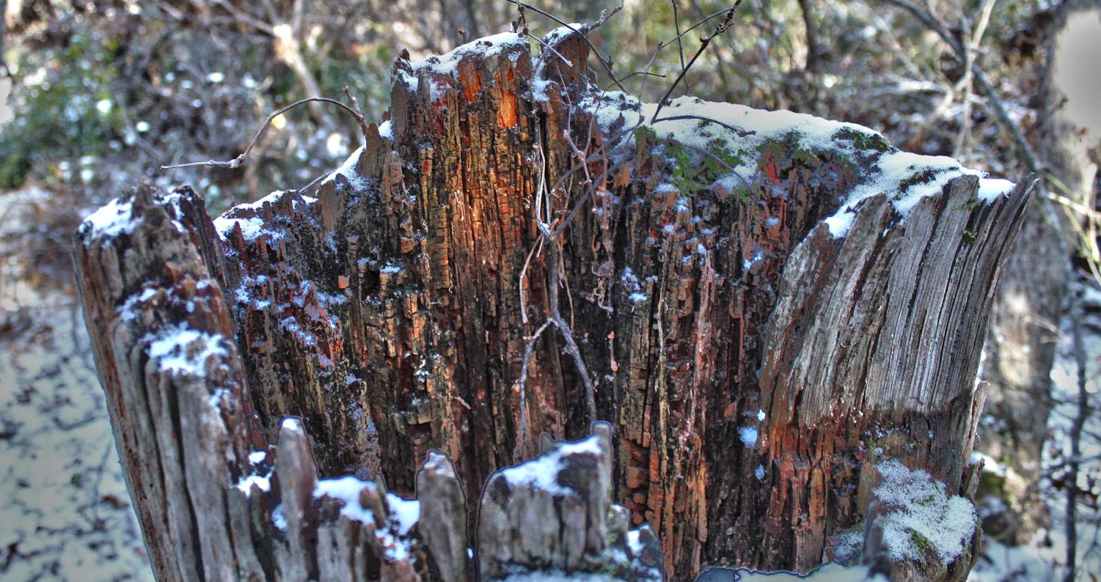 | Snow covered juniper stump along the Piedmont Ridge Trail |
