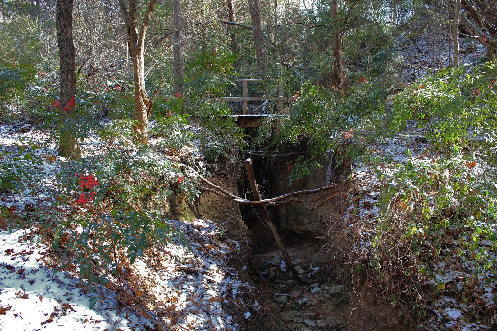 | Footbridge over the dry gulch in Devon Anderson Park |