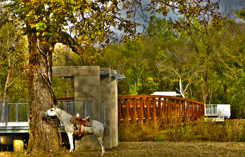 For those willing to make the jump to the other side of the river, a new world opens up. One where the khaki bird watchers are left behind for spur wearing cowboys. The folks in the photos here are friends of mine, people I have gotten to know on the “other side” of the river from the Audubon Center. Really neat to see them together on a trail ride. Usually I see them in groups of two or three on weekend evenings. So to see literally everyone together is awesome. I think the riders in the photos represent half of all the people I have ever seen in the Great Trinity Forest on this side of the river. No one else really goes there.