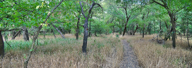 The once open and canopied view of the old Buckeye Trail is now somewhat blocked by Giant Ragweed that grew up on their side of the trail after bulldozers cleared a large swath of forest for a 6 foot wide path. The latest plans from the city envision a similar trail, called the AT&T Trail near a future planned golf course bearing a similar name. That trail if built using the same construction standards as the Buckeye, would remove over half a million square feet of virgin hardwoods. Unlike the former grazing areas reclaimed by the river, the AT&T Trail would run through an area never logged or farmed. Something to think about.