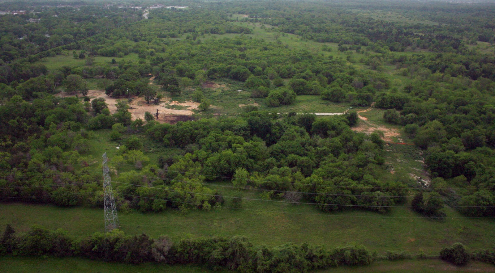 | Texas Horse Park overlay showing building footprint over a portion of the contamination zone (looking south from the Big Spring Pasture) |