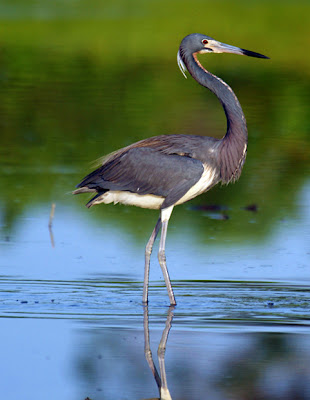 The Little Blue Heron (Egretta caerulea). The Little Blue Heron, Egretta caerulea, is a small heron. It breeds from the Gulf states of the United States through Central America and the Caribbean south to Peru and Uruguay.