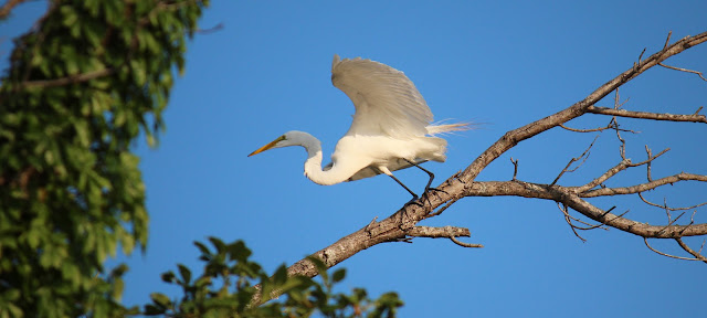 The Great Egret (Ardea alba). The great egret is the symbol of the National Audubon Society and represents a conservation success story. The snowy white bird’s plumage made it popular quarry in 19th-century North America. Great egrets were decimated by plume hunters who supplied purveyors of the latest ladies’ fashions. Their populations plunged by some 95 percent. Today the outlook is much brighter. The birds have enjoyed legal protection over the last century, and their numbers have increased substantially. This particular individual is a common site on this roost and around the shore of this particular cell. I have photographed in numerous times in the last year or two near the Union Pacific trestle.