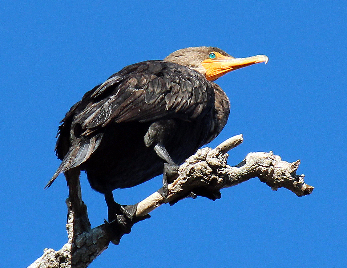 Cormorants on evening roost at the Trinity River Wetland Cells |