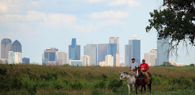 | Horseback at the confluence of the West and Elm Forks of the Trinity River, near Historic Eagle Ford, West Dallas, Summer 2012 |
