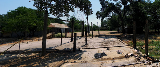 The old dilapidated building you see above probably at one time would have been a nice place. A poured concrete front porch facing south with double french doors it would have made for a nice residence or office on the ranch. Overlooking the ranch headquarters for the Jenkins property, Billy Ray Pemberton believes it was built in the 1940s.