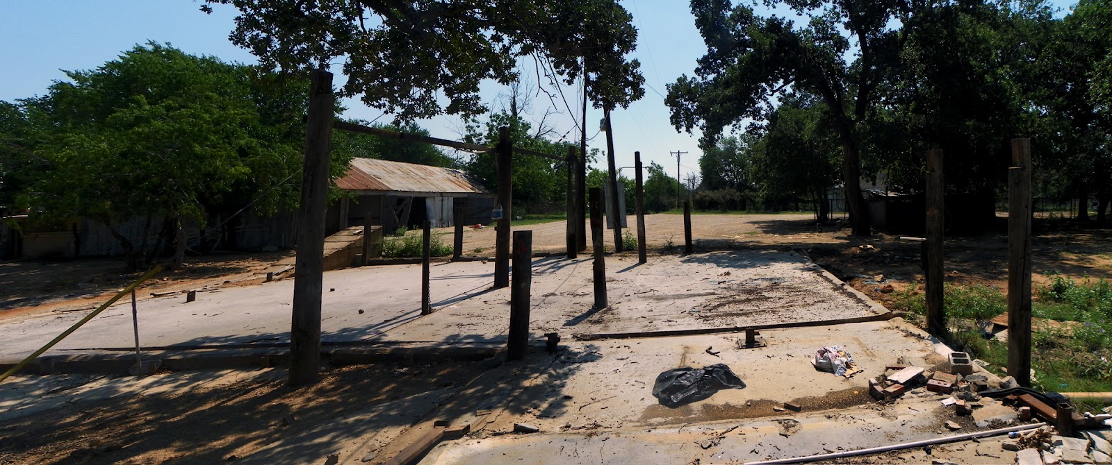 The concrete work for the foundations seen to the east of the well are all substandard. Thin veneers of concrete that I was told served as the slaughterhouse floor. Plumbing is largely absent and I have no idea where or how animal remains were disposed.